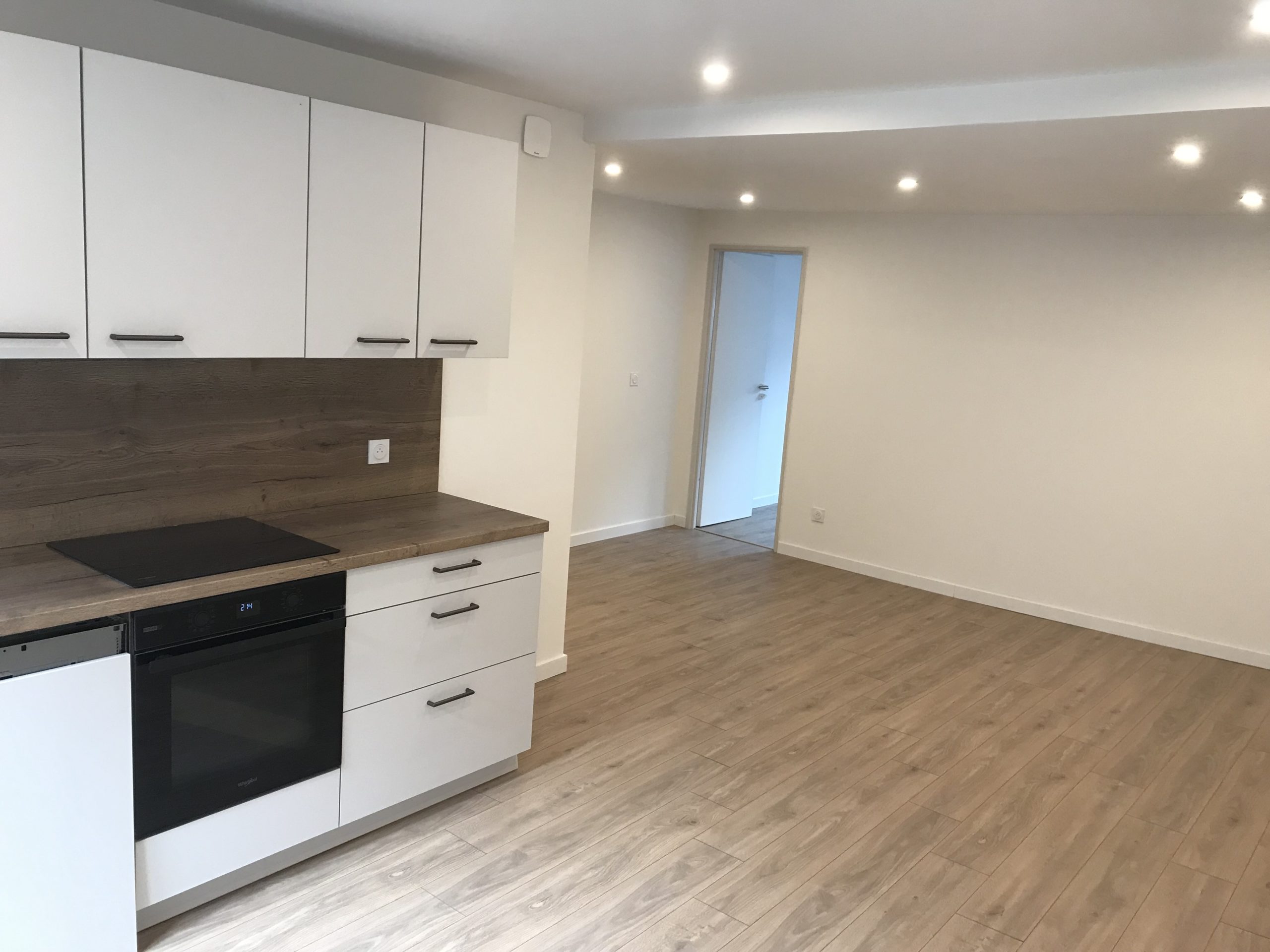 Ce bien est équipé d’un hall d’entrée desservant deux chambres, une salle d’eau, WC. La cuisine aménagée et équipée. Elle comprend un four pyrolyse, une plaque induction, une hotte aspirante et un lave vaisselle.